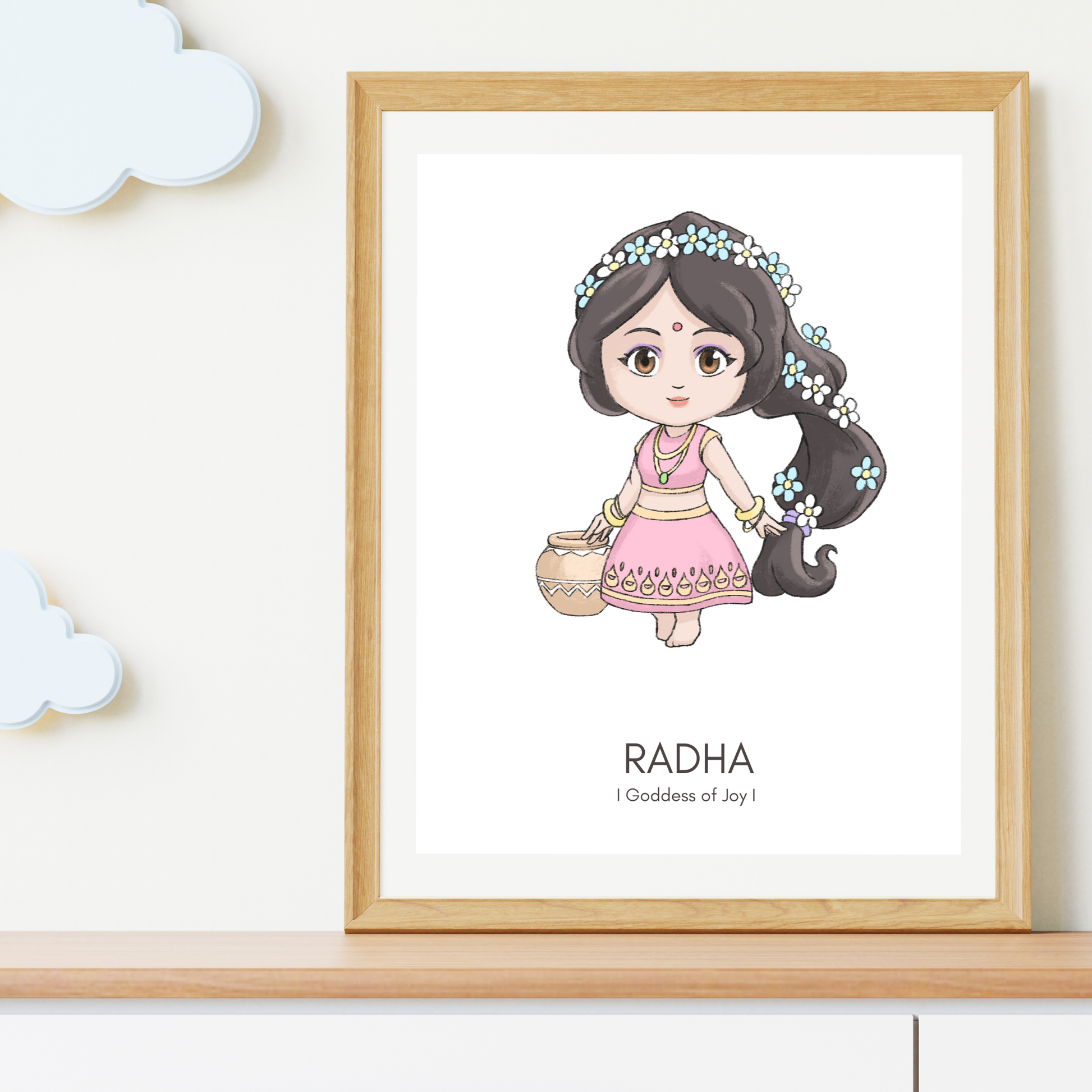 The artwork of the Indian gods and goddesses were originally drawn for our children's book 'My Indian Superheroes', available here.